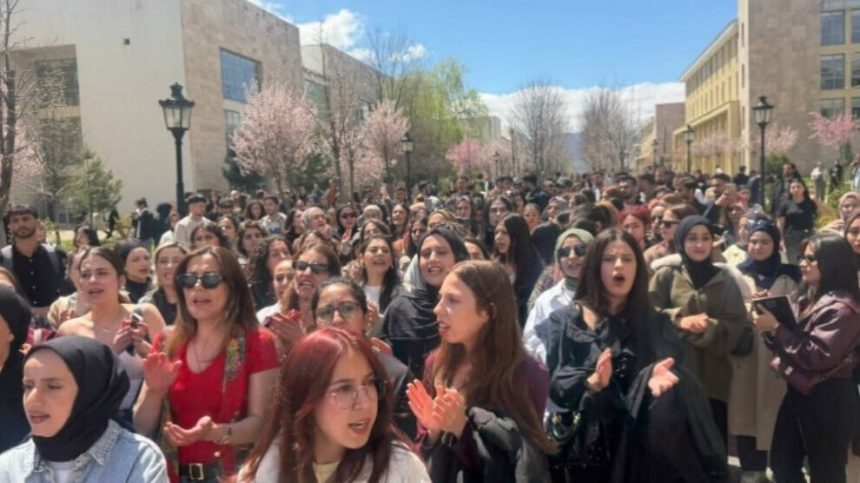 Xwendekarên ku li seranserê kampûsê meşa xwe lidar dixistin, rastî destwerdana polîsan hatin. Li dijî vê xwendekar bi gotina “Gulistan li ku ye?” nerazîbûn nîşan dan.