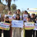 Mamoste Necla Mihemed anî ziman ku 21’ê Sibatê roja berxwedanê ye û wiha axivî: “Em dixwazin zarokên me fêrî zimanê dayîkê bibin. Zarokên me çend sale bi zimanê xwe dixwînin, gihane astên bilind. Em dixwazin nav û zimanê me bikeve destûrê. Em Kurd destê xwe bixin destê hev û zimanê xwe biparêz in.”