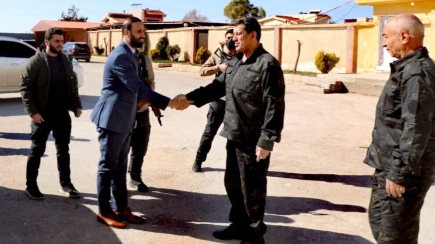 Fermandarê Giştî yê Hêzên Sûriya Demokratîk (QSD) Mazlûm Ebdî şandeyek hikûmeta demkî ya Sûriyeyê bi serokatiya Ziyad Ayiş û hejmarek berpirsên hikûmeta demkî pêşwazî kir.