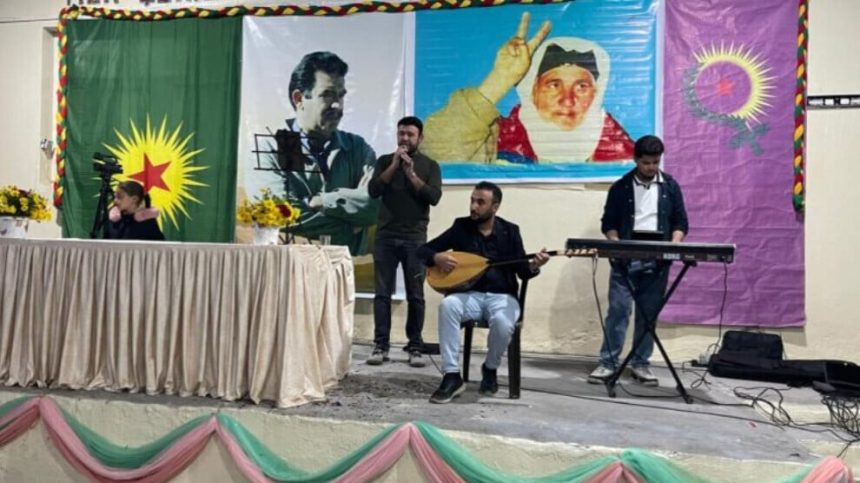Di şahiyê de wêneyên Rêber Apo, alên KCK’ê hatin bilind kirin û dirûşmeyên “Bijî Serok Apo” û “Rojbûn Li Rêber Pîroz be” hatin berz kirin.