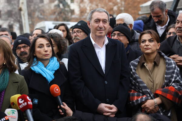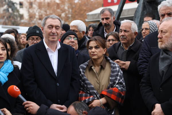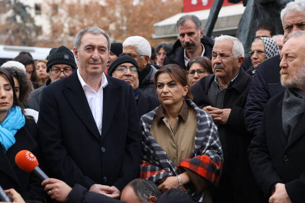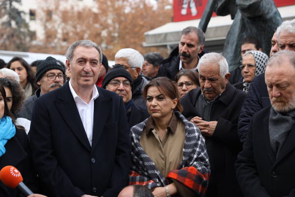 Hevserokê DEM Partiyê Tûncer Bakirhan jî di destpêka axaftina xwe de qetilkirina rojnamevan Nazim Daştan û Cîhan Bîlgîn şermezar kir.