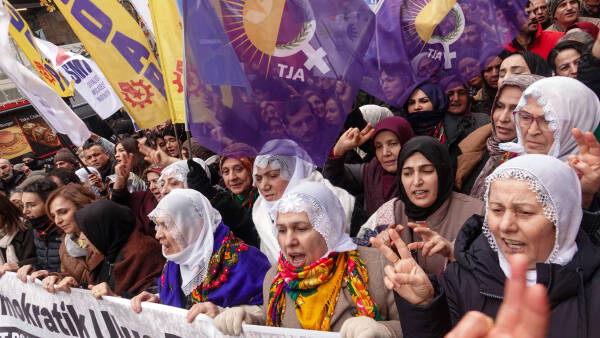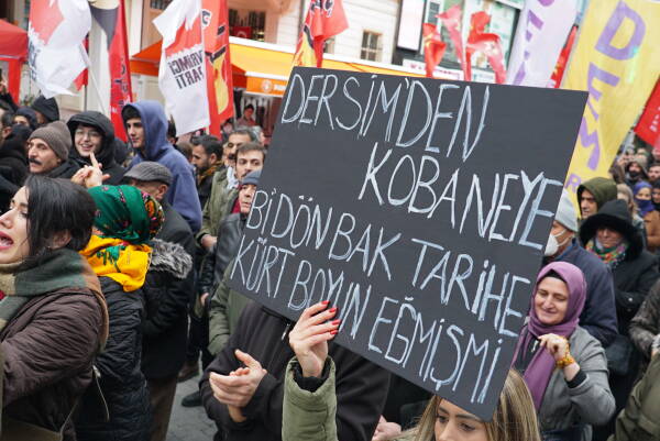 Ji rêxistina DEM Partî ya Stenbolê Arîfe Çinar di daxuyaniyê de axivî û diyar kir ku ew xwedî li berxwedana Rojava derdikevin û ew ê derkevin.