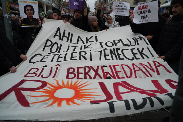 Meş ji avahiya DEM Partî ya Kadokoyê heta peykera Ga dewam kir. Di daxuyaniyê de dirûşmeya “Bijî berxwedana Rojava” hatin berzkirin.