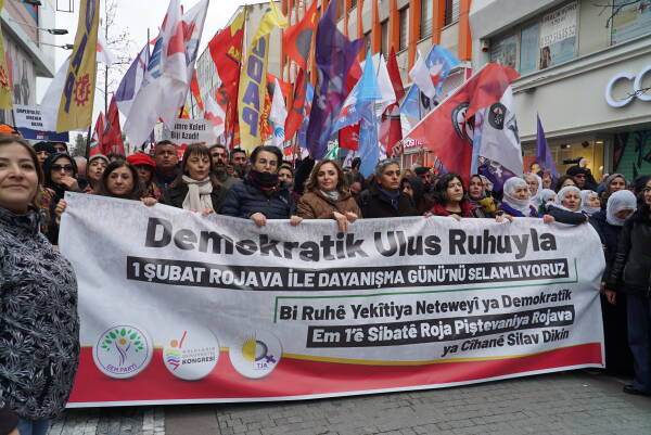 Li Stenbolê, bi wesîleya 1’ê Sibatê Roja Piştevaniya Rojava ya Cîhanê, ji aliyê Tevgera Jinên Azad (TJA), Partiya Wekhevî û Demokrasiyê ya Gelan (DEM Partî) û Kongreya Demokratîk a Gelan (HDK), ji Kolana Halitaga ya Kadikoya Stenbolê heta Kadikoy Bogayê meşek li dar xistin. Partiyên siyasî, saziyên civaka sivîl û bi hezaran kes tevlî meşê bûn. Di daxuyaniya piştî meşê de pankartên, “Civaka exlaqî û polîtîk wê çeteyan têk bibe”, “Bijî berxwedana Rojava”, “Şoreşa Rojava pek tê bê hêza ciwanan” û “Gelê Kurd yek ê Rojava rûmete” hatin vekirin.