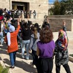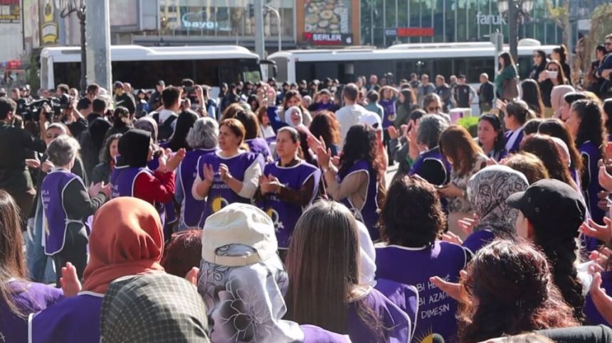 Ji ber ku destûr ji meşê re nehate dayin, jinan li Guvenparkê daxuyaniyek dan çapemeniyê. Di dema daxuyaniyê de dirûşmên “Azadî, Azadî, Azadiya Rêbertî”, “Mafê hêviyê mafê gelan e”, “Bijî Serok Apo”, “Bijî berxwedana zindanan”, “Bijî têkoşîna jinan” û “Jin, Jiyan, Azadî, azad bike Rêbertî” hatin qîrîn.