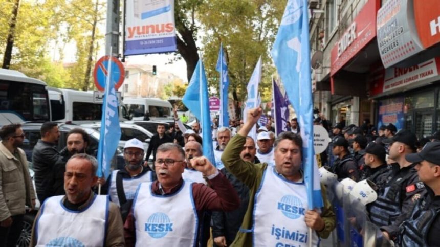 Konfederasyona Sendîkaya Kedkarên Cemaweriyê (KESK) li dijî bêhiqûqiya KHK’ê bi dirûşma “Em ê karê xwe bi paş ve bistînin” di 13’ê Cotmehê de ji Amedê ber bi Enqereyê ve dest bi meşê kirin. Meş di roja çaremîn de gihişt Enqereyê. Meşvan li Enqereyê ji aliyê endam û rêveberên sendîkayan û gelek kesan ve li pêşiya Navenda Giştî ya SES’ê hatin pêşwazîkirin. Polisan xwest pêşwazîkirinê asteng bike lê girse bi berxwedanê gihîşt hev.