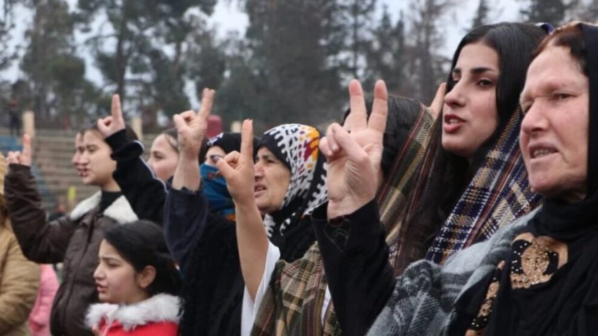 Mitîng bi berzkirina dirûşmên bi banga serbestberdana dîlgirtiyan û misogerkirina mafên jinan di destûrê de bi dawî bû.