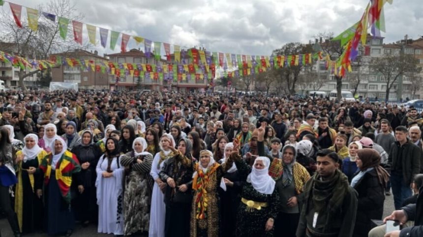 Di saetên siharê de gel li Qada Sali Pazari ya li navçeya Selçûklû kom bû, di tevahiya rojê de govend hate gerandin û dirûşme hatin berzkirin.