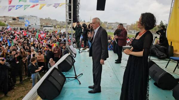 Namzetên DEM Partiyê yên ji bo Hevşaredariya Bajarê Mezin a Mêrdînê Ahmet Turk û Devrîm Demîr bi hev re derketin ser dikê. Namzeta hevşaredariyê Devrîm Demîr Newroz li beşdaran pîroz kir.