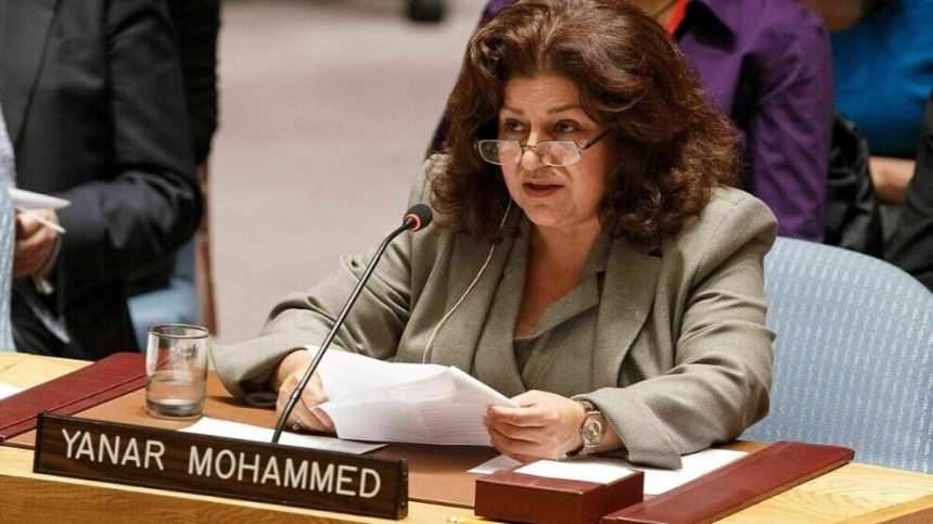 Di daxuyaniyê de, hat destnîşan kirin ku Yenar Mihemed bi salan ji bo parastina jinan û xurtkirina mafên wan xebat meşandiye û hat gotin ku bi vê yekê re hevkariyekî girîng di xebatên mafên mirovan ên Neteweyên Yekbûyî de kiriye.