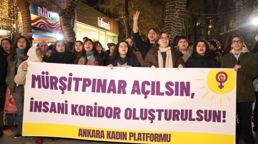 Platforma Jinan a Enqereyê li dijî dagirkirina Kobanê li Kolana Yukselê hatin gel hev. Li ser navê platformê Ebru Ozel daxuyanî xwend.