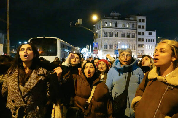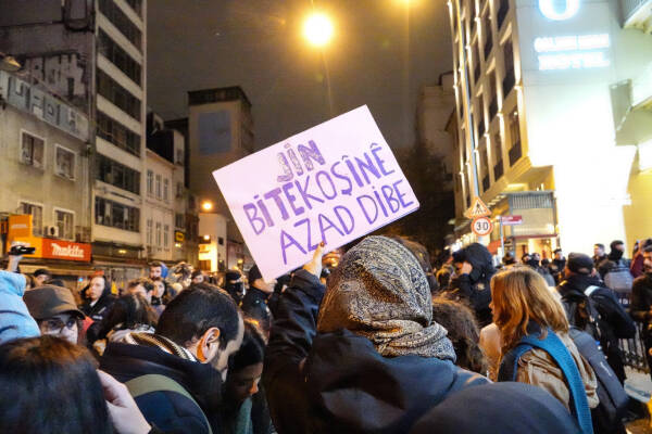 Jinan qedexeya keyfî ya Walîtiya Stenbolê ya der barê 25’ê Mijdarê Roja Têkoşîna li Dijî Tundiya Ser Jinê ya Navneteweyî nas nekirin û bi dirûşmeya “Jin, Jiyan, Azadî” ber bi Taksîmê ve meşiyan. Jinan dorpêça polîsan a li Taksîma ku Rewşa Awarte lê hatibû îlankirin derbas kirin û ji Tunelê û Galatayê heta Karakoyê meşiyan.