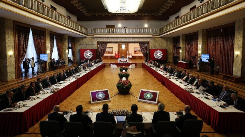 Di hevdîtinê de Serokwekîla Koma DEM Partiyê Gulistan Kiliç Koçyîgît, Cîgirê Serokê Giştî yê MHP’ê Fetî Yildiz, Serokê Koma AKP’ê Abdulhamît Gul, Serokwekîlê Koma CHP’ê Mûrat Emîr û Serokê Koma Yenî Yolê Bulent Kaya di civînê de amade bûn û nêzî saetek dewam kir.