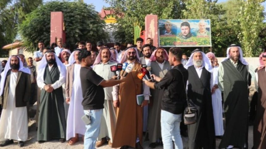 Daxuyanî li navenda bajarê Şengalê li ber avahiya Meclisa Gel bi tevlîbûna gelek endam û rêvebirên saziyan hate dayin.