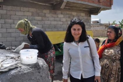 Hevseroka ÎHD’a Îzmîrê Zîlan Gumuş daxuyanî bi kurmancî xwend.