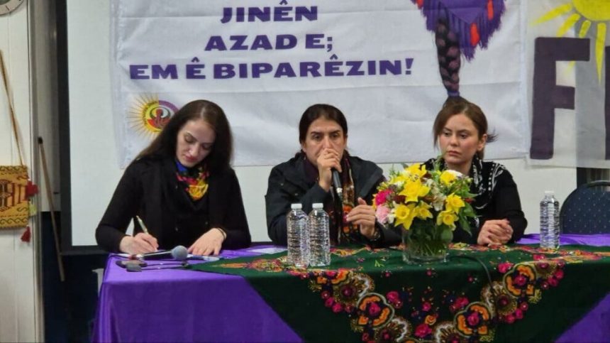 Midia Piorti destpêkê axivî, qala çalakiyên “Jin, Jiyan, Azadî” kir û anî ziman ku ev pêvajo ji bo têkoşîna jinê xaleke girîng e. Midia Piroti anî ziman ku li hemberî êrişên li ser Rojava Kurdên li diasporayê daketin qadan û piştevaniya xwe nîşan dan.
