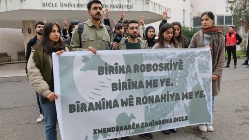 Xwendekarên Zanîngeha Dîcleyê bi boneya bîranîna qurbaniyên Komkujiya Roboskiyê li ber kantîna Fakulteya Perwerdehiyê kom bûn û xwestin heya ber Fakulteya Fenê ji bo bîranîna qurbaniyan bimeşin. Di destpêka meşê de polîsan xwendekar dorpêç kir û paşê êrişî xwendekar û rojnamegerên ku meşê dişopandin kir.