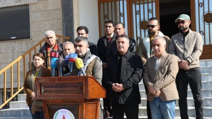 Şandeyê îro serdana Partiya Yekitiya Demokratîk (PYD) kir. Hevserokê PYD’ê Xerîb Hiso pêşwaziya şandeyê kir. Şandeyê li ber avahiya PYD’ê daxuyaniyek da çapemeniyê.