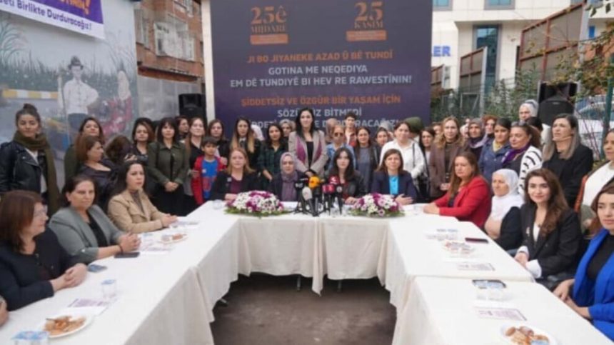 Psîkologa Midûriyeta Polîtîkayên Jin a Şaredariya Rezan Rozerîn Dogar daxuyaniya hevpar a bi zimanê Tirkî, Psîkologa Midûriyeta Polîtîkayên Jin a şaredariya Peyas Fatma Budak Gul jî Kurdiya wê xwend.