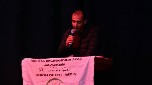 Şêwirmendê Yekîtiya Ragihandina Azad Bunyad Cizîrî di axaftina xwe de bal kişand ser rola girîng a şehîdên çapemeniyê di veguhestina rastiya şoreşa 19’ê Tîrmehê ji raya giştî ya cîhanî re û eşkerekirina polîtîkayên şerê taybet ên li dijî pêkhateyên herêma Bakur û Rojhilatê Sûriyeyê de.