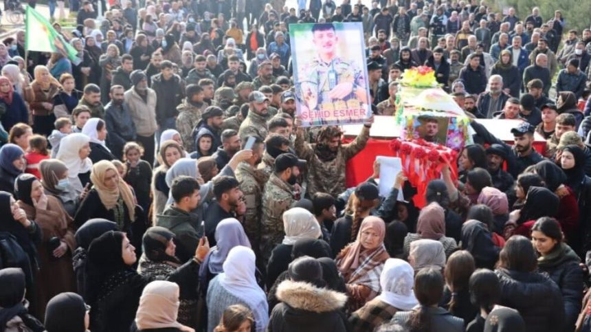 Meclisa Malbatên Şehîdan a Bajarê Qamişloyê ji bo şervanê Hêzên Komandos ên QSD’ê şehîd Çiyarûs (Esmer Silêman) ê merasîma cenaze li Pakrewangeha Şehîd Delîl Sarûxan li dar xist. Şêniyên bajar û gundewarê Qamişloyê, endamên saziyên sivîl, malbatên şehîdan û hêzên leşkerî beşdarî merasîmê bûn.