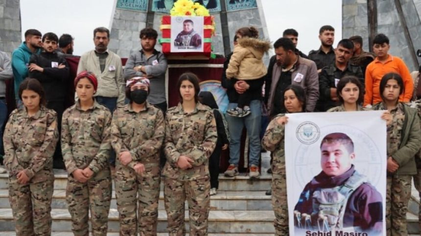 Xelkê Kobanê cenazeyê endamê Saziya Giştî ya Gumrikê Masîro (Ehmed Elî) ku 20’ê Çileyê li Sirînê şehîd bûbû, îro bi merasîmeke bi heybet li Pakrewangeha Şehîd Dîcle veşartin.
