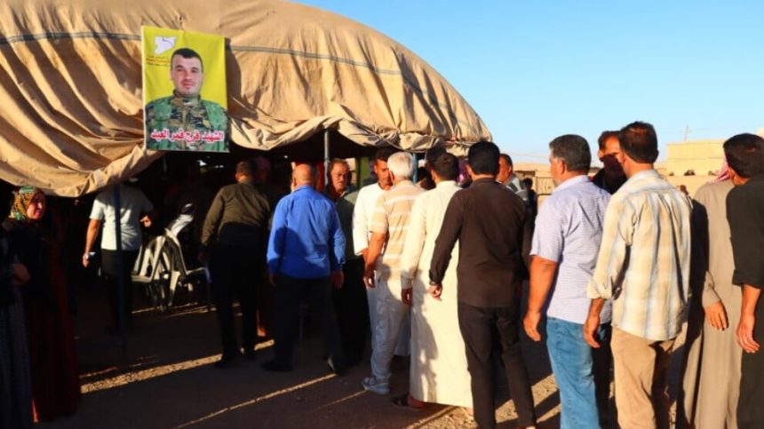 Şêniyên bajarê Til Hemîsê, endam û nûnerên saziyên civaka sivîl, malbatên şehîdan, Hêzên Ewlekariya Hundirîn, rûspiyên êlan û kesayetên civakî tev li merasîma sersaxiyê ya şervanê Hêzên Sûriya Demorkatîk (QSD) şehîd Ferec Qemer El Îd (Harûn) bûn ku li pêşiya mala malbata wî ya li gndê Xirbet Musa yê başûrê bajarê Til Hemîsê hatiye lidarxistin.