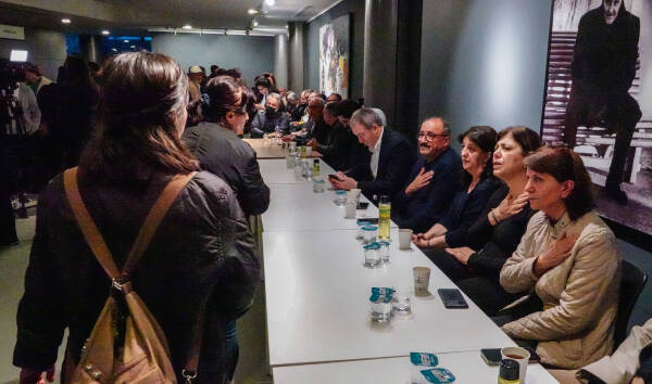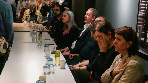 Hola Şanoyê ya Navenda Çandê ya Nazim Hîkmet a ku sersaxî lê tê qebûlkirin, ji kesan tijî bû. Wêneyê Sirri Sureyya Onder li ser ekranê hat pêşandan. Mase bi wêneyên Onder û qurnefîlan hate xemilandin.