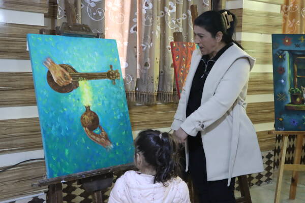 Şêwekarê bi navê Mihemed Semo ku wêneyê Rêber Apo neqiş kiriye, wiha qala tabloyên xwe dike: “Ev pêşengeh di nava xwe de 50 tabloyan dihewîne, çîrokên wê girêdayî folklora Kurdî û kesên pêşeng ên Kurdan e. Min bi xwe xwest ez Rêberê xwe neqiş bikim. Dema ku mirov tabloyekê neqiş dike, dixwaze hestê xwe yê hunerî yê Kurdî bide xêzkirin.”