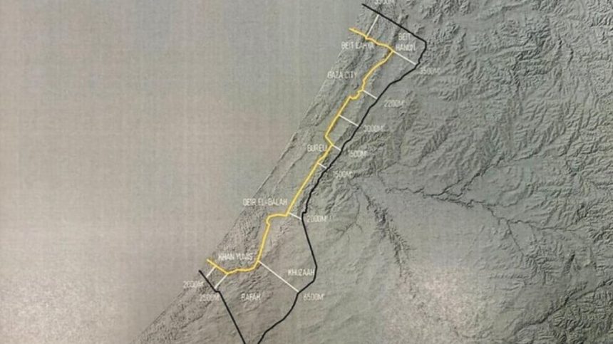 Serokê DYE’yê Donald Trump li ser platforma medya dîjîtal Social Truth daxuyaniyek da û got, “Piştî danûstandinan Îsraîlê xeta vekişînê ya destpêkê ya ku me nîşanî Hamasê dan, qebûl kir.” Trump nexşeyek li peyama xwe bi cih kir ku tê de xeteke zer a bi 1,5 û 3,5 kîlometreyî ya dûrî xaka Fîlîstînê ya li nava Şerîda Xezeyê ye, hate weşandin.