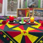 Piştî axaftina Tulay Hatîmogûllari dirûşmên “Jin, jiyan, azadî” û “Ciwan fedaiyên Rêber Apo ne” berz kirin.