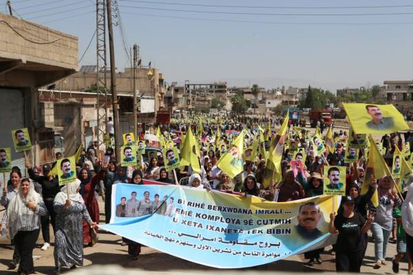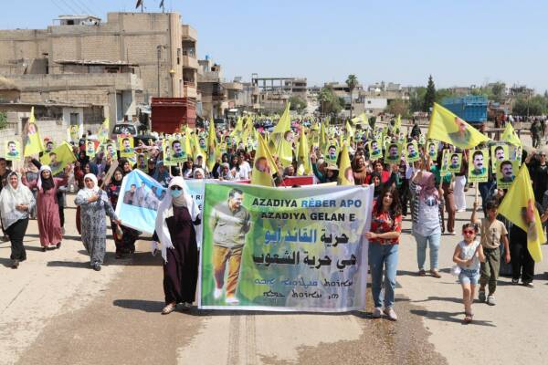 Bi sedan şêniyên bajarên Dêrikê, Girkê Legê, Til Koçer û Çilaxayê bi dirûşma “Bi rihê berxwedana Îmraliyê em ê komploya 9’ê Cotmehê û xiyanetê têk bibin” meşiyan.