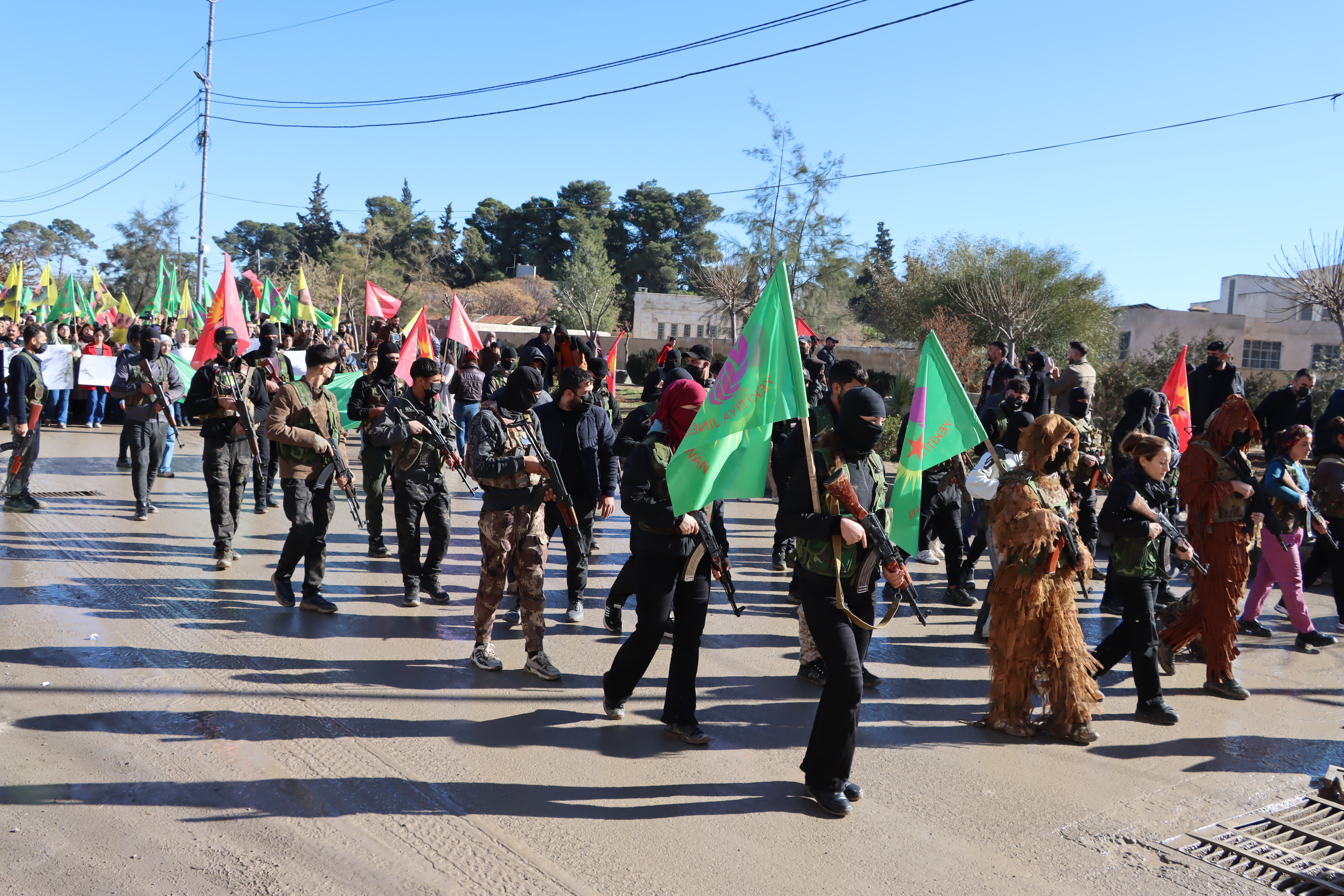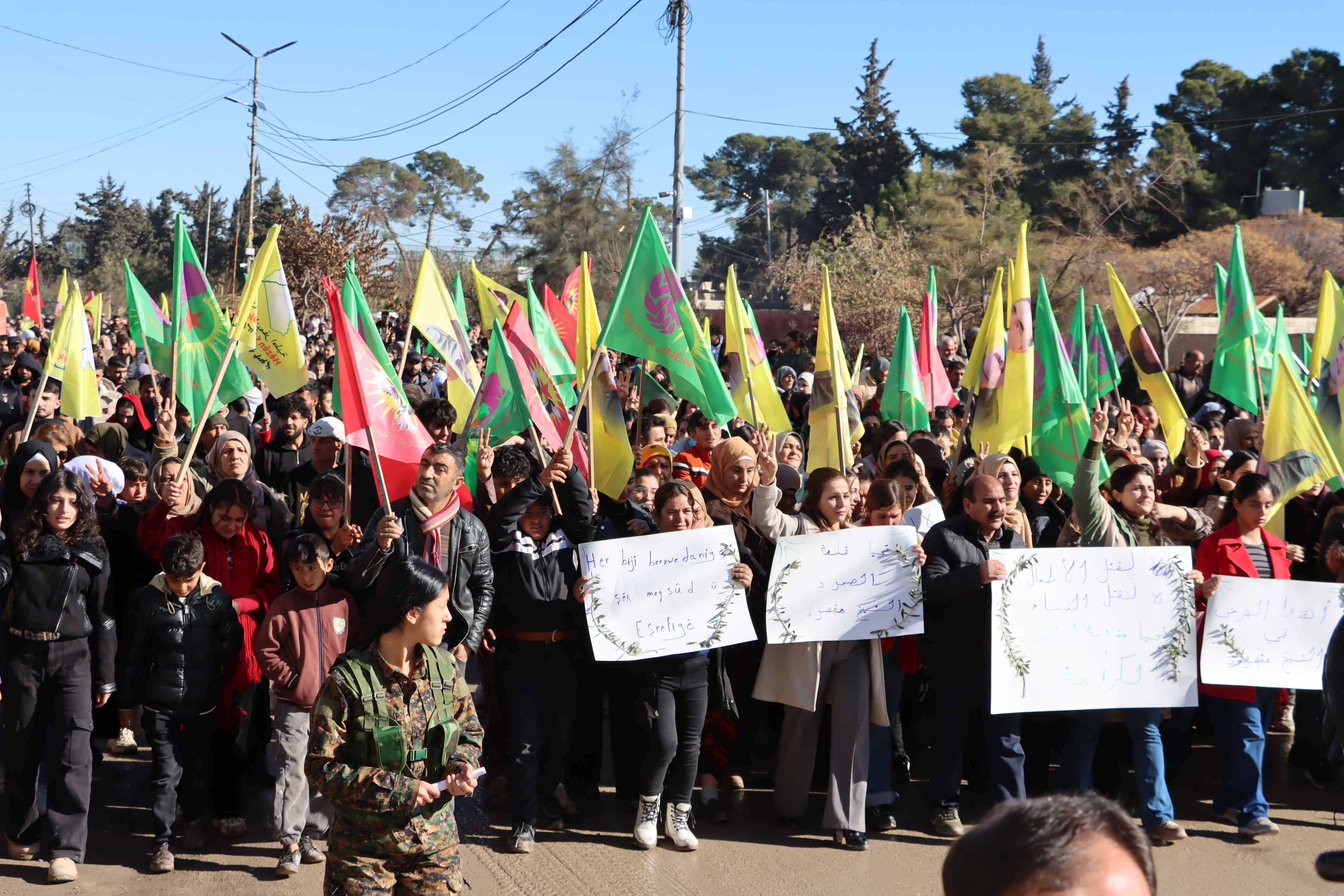 Şêniyên Kantona Firatê yê di meşa ji bo piştgiriya berxwedaniya Helebê de, ji ANF’ê re axivîn û gotin, cîhan bi giştî bêdenge divê êdî xwedî li Helebê derbikevin.