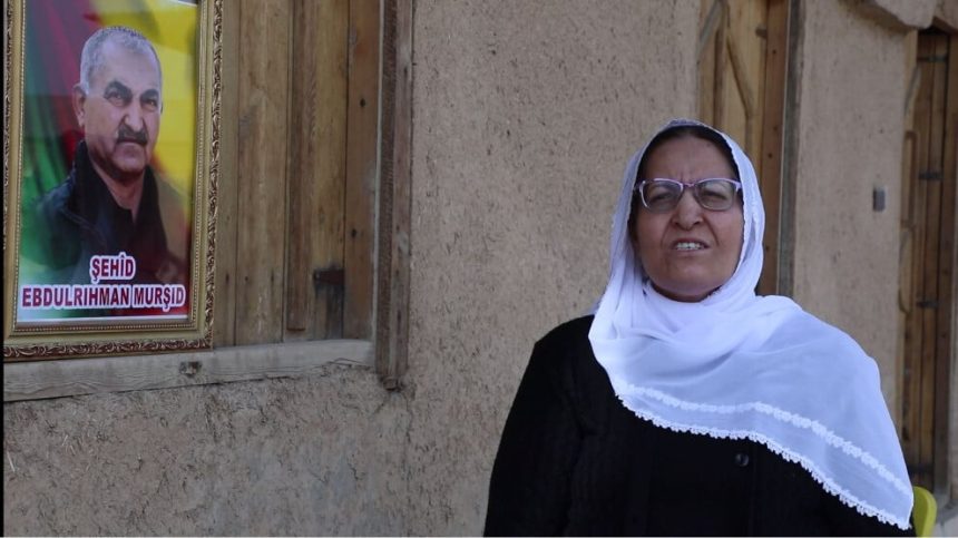Rejîma Baas dema zanî hevjînê min di rêxistinê de kar dike, sê caran wî girtin û xistin zindanê û yek ji wan jî zindana Filastîn bû. Gelek êşkence li wî dikirin da ku dest ji rêxistinê berde lê belê Ebdilrehman her ku ji zindanê derdiket hêrsa tolhildanê di wî de gurtir dibû û yek roj jî terka têkoşîna xwe nekir. Di sala 2018’an de dema ku dewleta Tirk bi 73 balafiran êrîşî bajarê Efrîn û navçeyên wê kir, Ebdilrehman ji gundê xwe Miskê ya girêdayî navçeya Cindirêsê derneket, her wiha hevalên ku di çeperan de birîndar dibûn digirt mala xwe, ew û keça min Narîn wan hevalên birîndar tedawî dikirin heya kêliya derketina bi darê zorê ji bajarê Efrînê.”